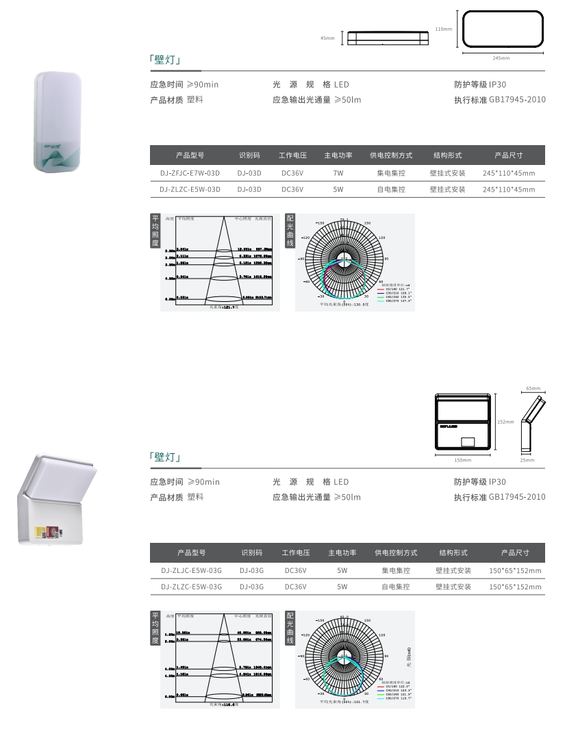 DJ-ZFJC-E7W-03D集电集控/自电集控壁灯