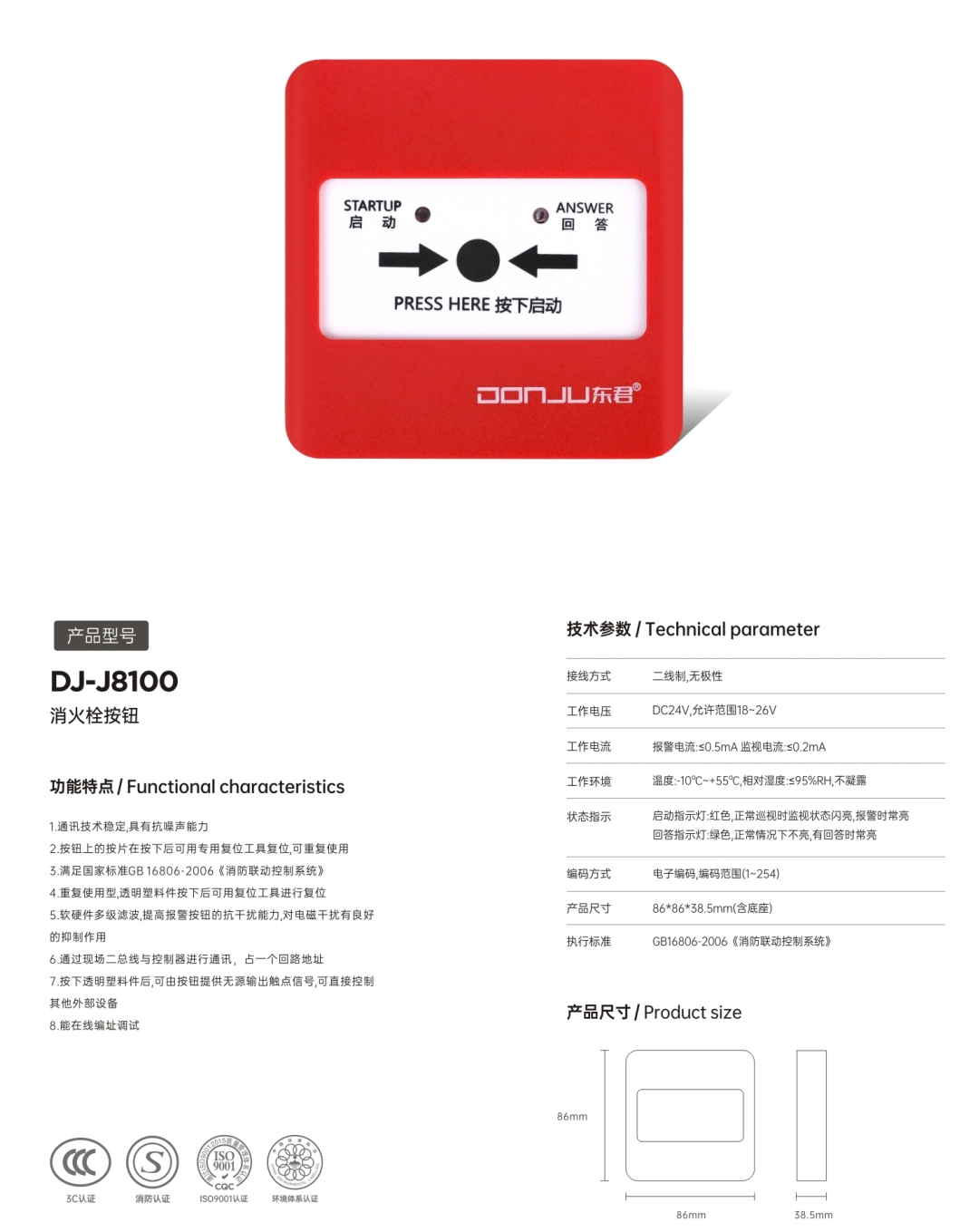 DJ8100消火栓按钮