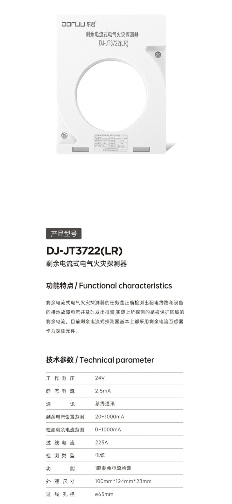 DJ-JT3722(LR)剩余电流式电气火灾探测器