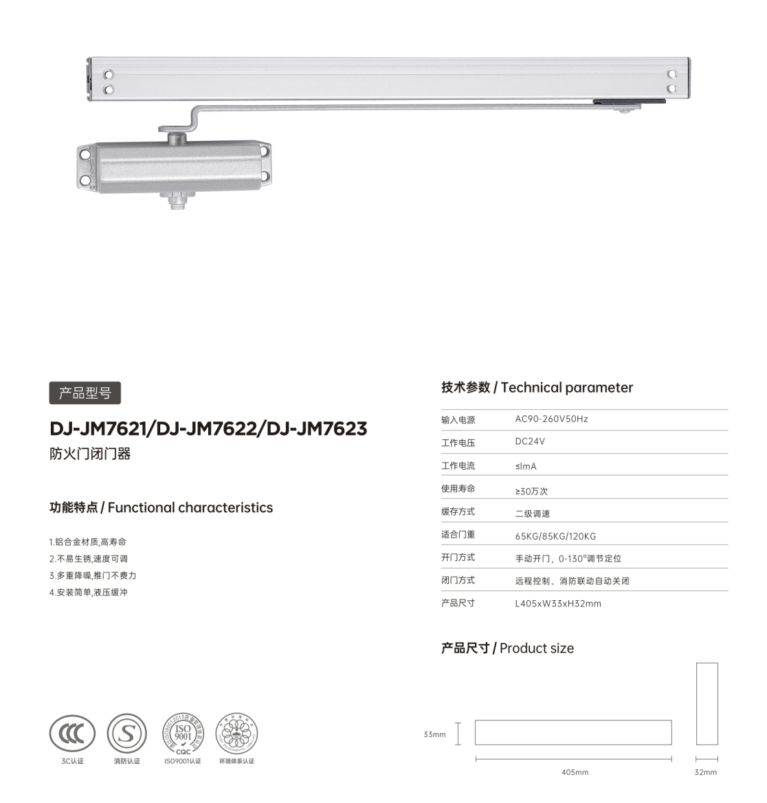 DJ-JM7621/DJ-JM7622/DJ-JM7623防火门闭门器